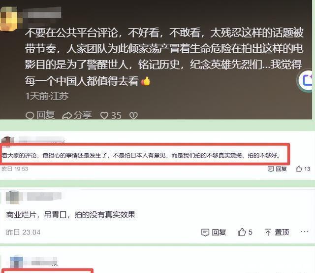 有的表示,不能用“电影的视角和好不好看”来评价它,导演只是想让大家都知道这段历史和铭记。 还有的表示:“删减后,画面都不够真实了,不够震撼了,缺少冲击力了。”