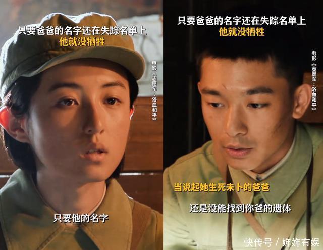 张子枫作为一番,饰演了“李晓”,第二部中,就经历了哥哥牺牲、爸爸失踪的命运安排。 第三部中,战场上遇到了好友杨三弟时,得知还没有爸爸消息下,她坚强不流泪的演技,很真,就是一枚小姑娘。